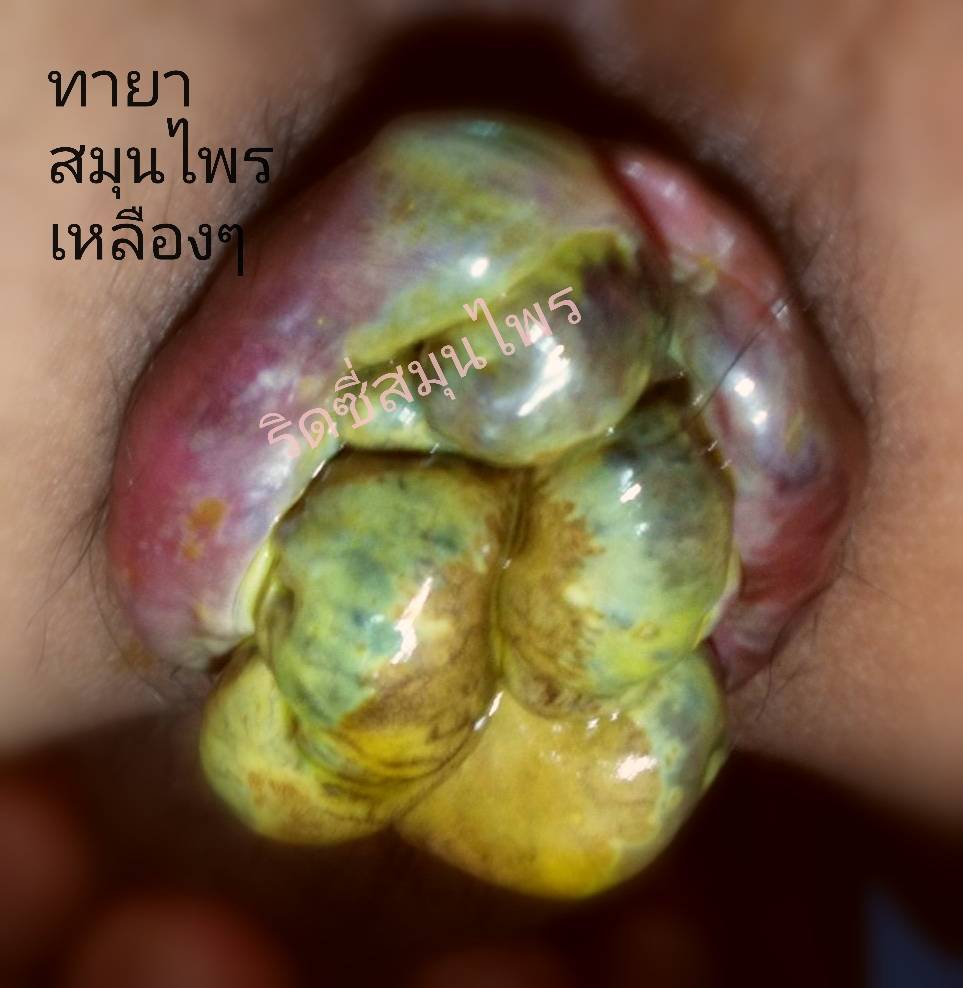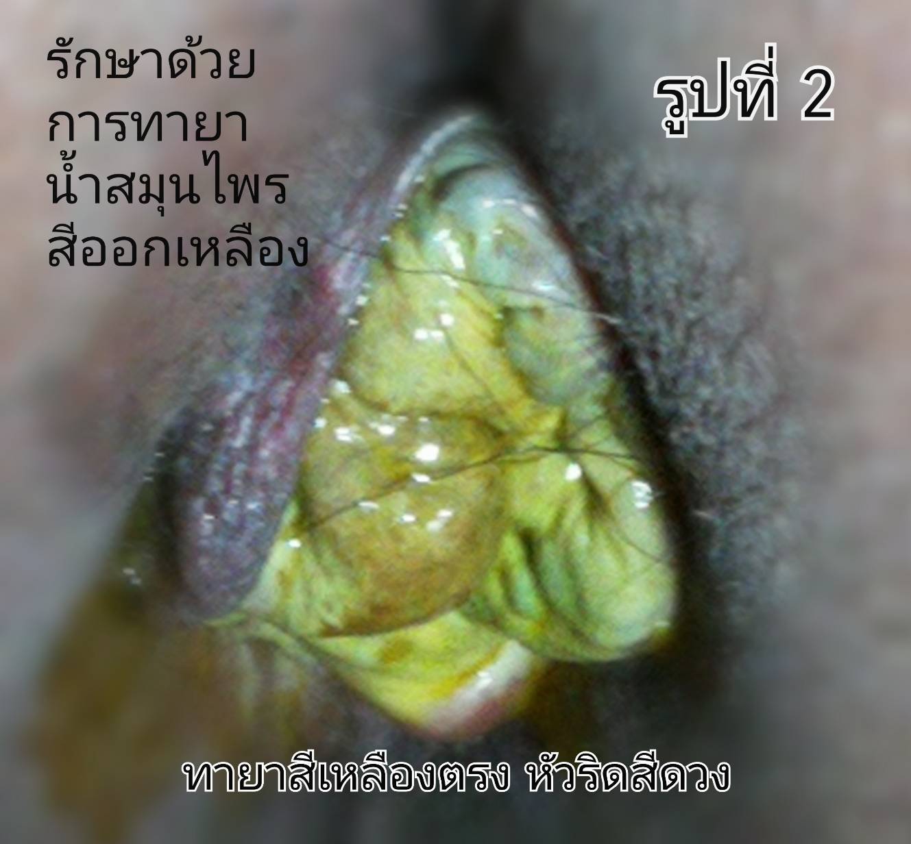 ทายาด้านนอกและในด้วยยาน้ำสมุนไพร หัวจะมีสีเหลือง |